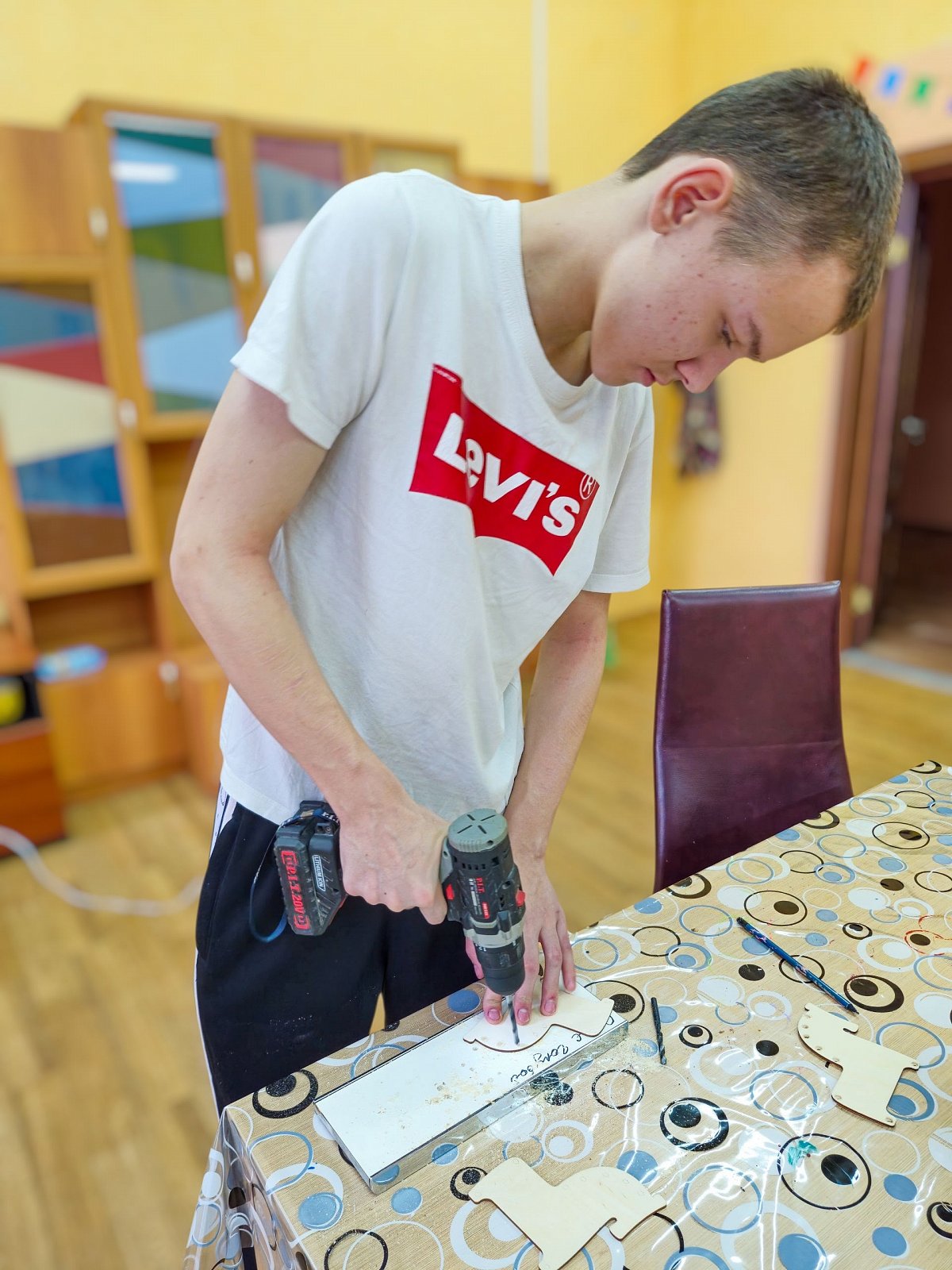 Настоящие инструменты: В ход пошел и шуруповерт! Мальчики учились правильно и безопасно сверлить отверстия, подготавливая заготовки для будущих шедевров.