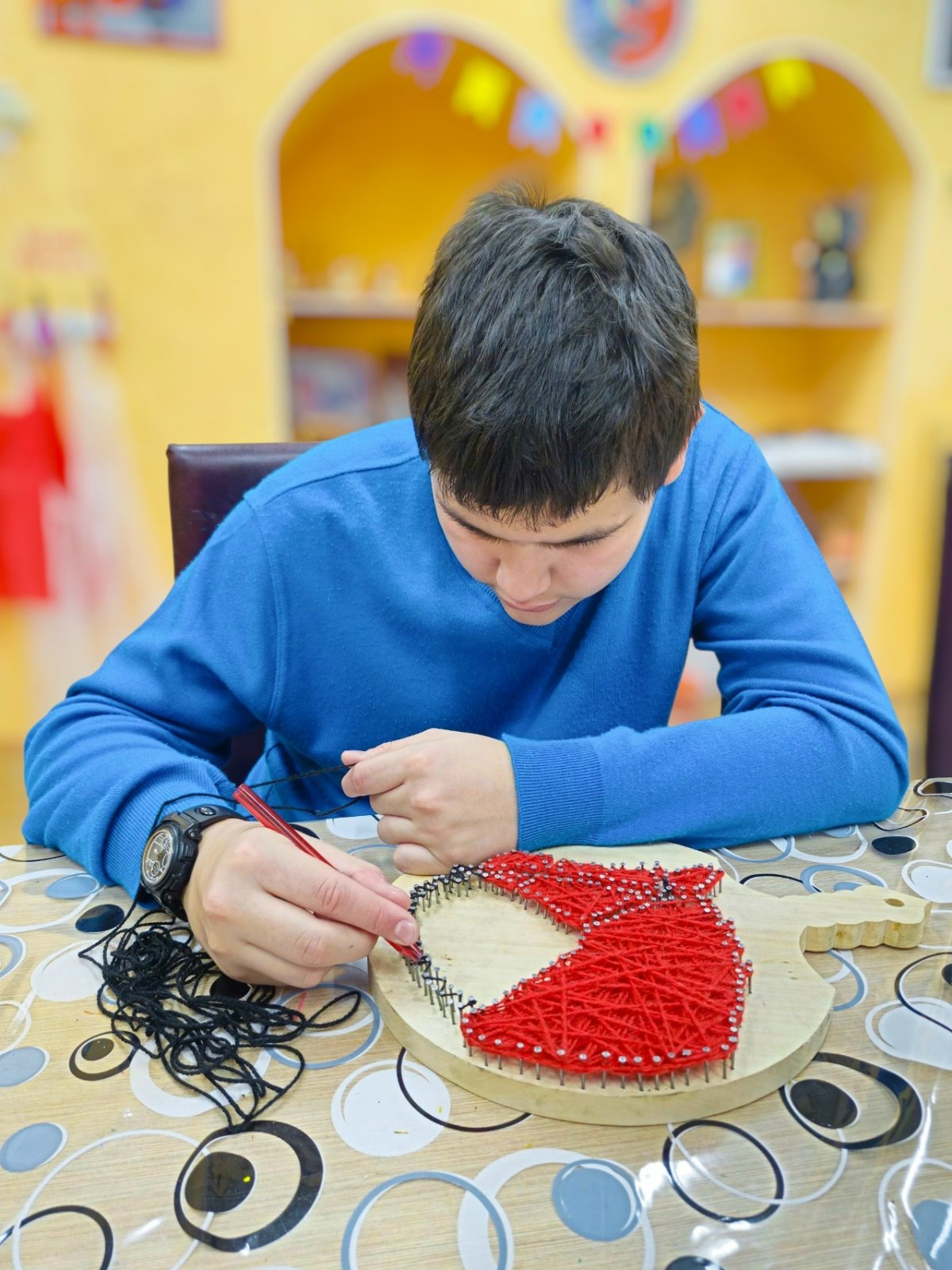 И чтобы тренировка была не скучной, мы начали создавать настоящую картину в технике String Art (ниткография или изонить)!