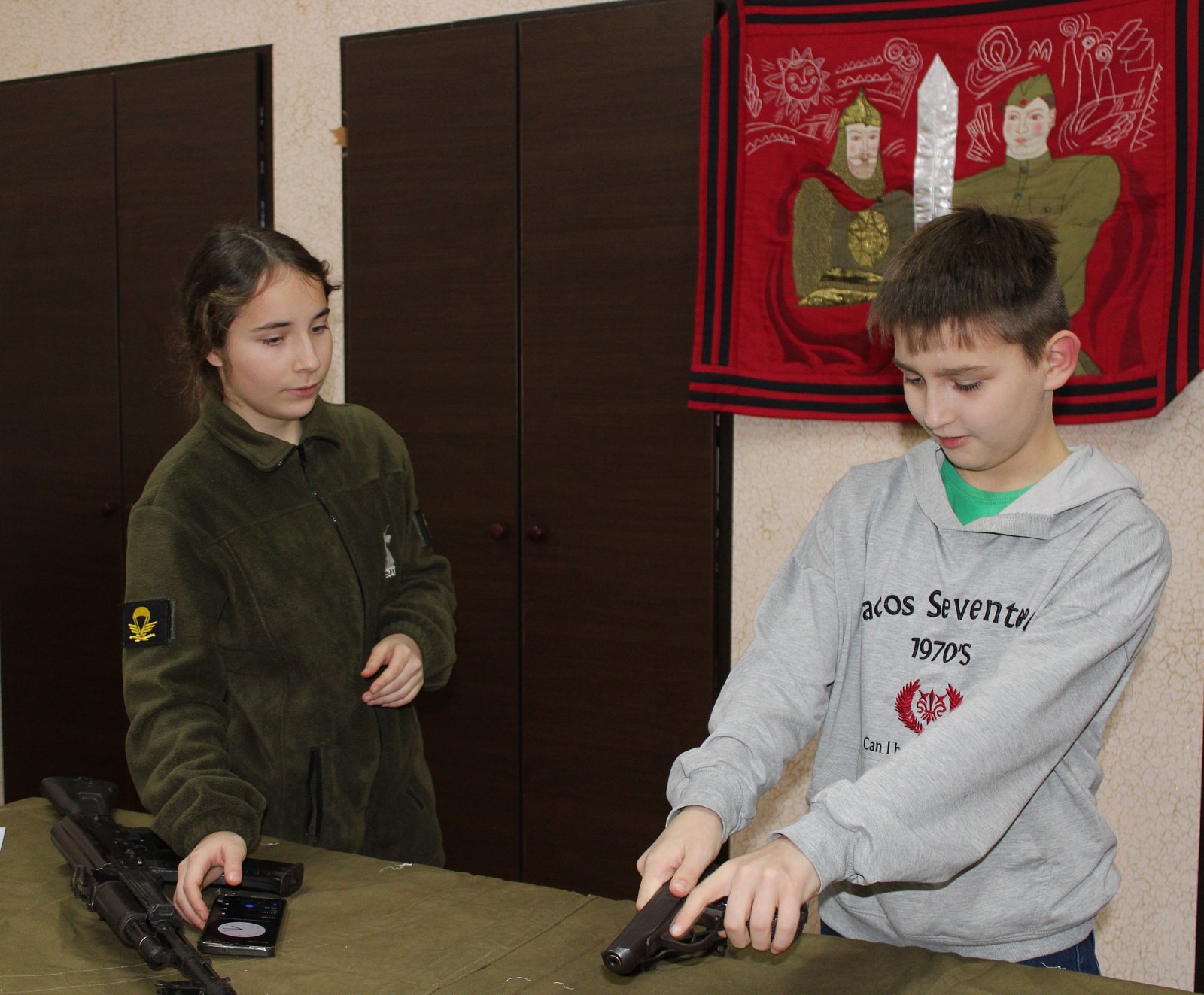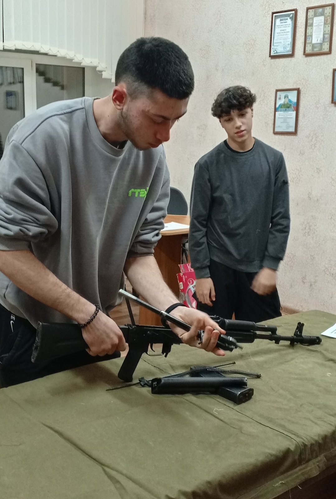 Но это был не только праздник для души! Участники смогли проверить свои силы и ловкость в различных испытаниях: сборка автомата, отжимания, примерка противогаза – всё это добавило мероприятию азарта и показало, что дух героев жив в каждом из нас!