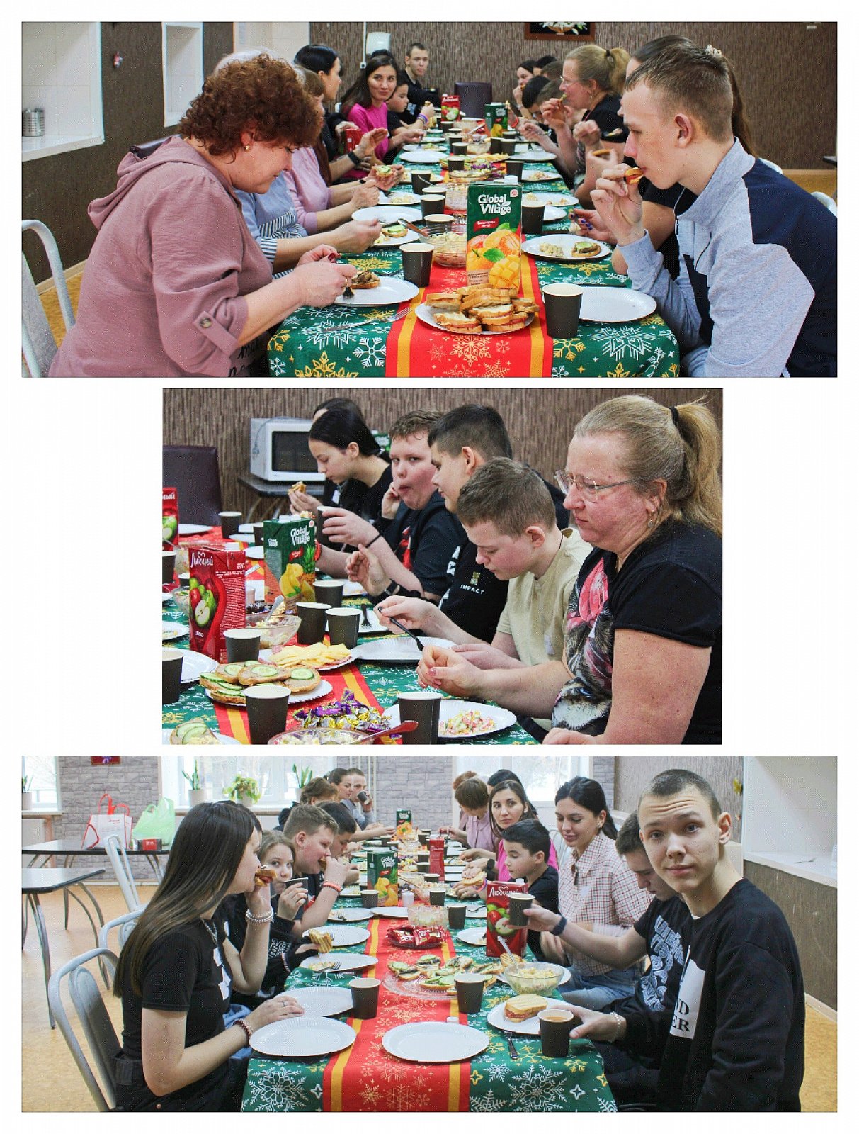 И наконец, завершив программу мероприятия, все собрались вокруг большого стола, чтобы насладиться совместным праздником, теплом общения и вкусом созданных своими руками угощений. Также, волонтёры поздравили наших девочек с праздником и вручили подарки!